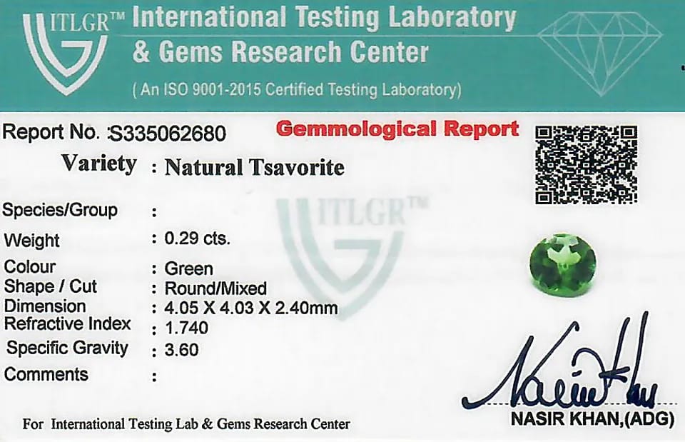 | Gemstone | Natural Tsavorite |